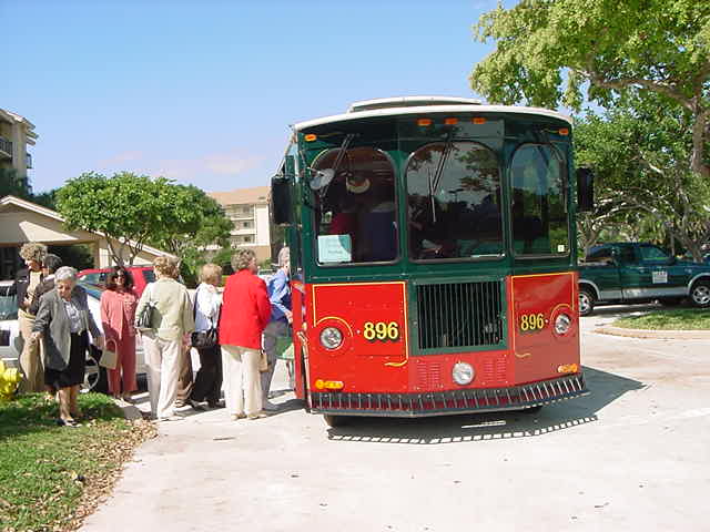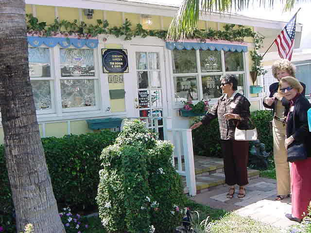 Molly's Trolley picked up a group of tea drinkers at the Marina at the Bluffs Wednesday and transported them to the Serenity Tea House in West Palm Beach. Mary, the tea house owner, hosted the traditional afternoon tea while games were played and an artist sketched some of us. Then it was back on the trolley and home to the Marina. Many thanks to Myra Hoffstein who put it all together again.
